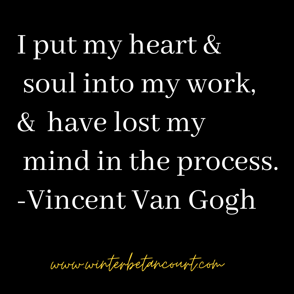 I hope that these words from Vincent Van Gogh, the tortured, brilliant artist, give you insight and inspiration and help you on your way towards accomplishing your goals today and everyday 🙂 Happy creating!