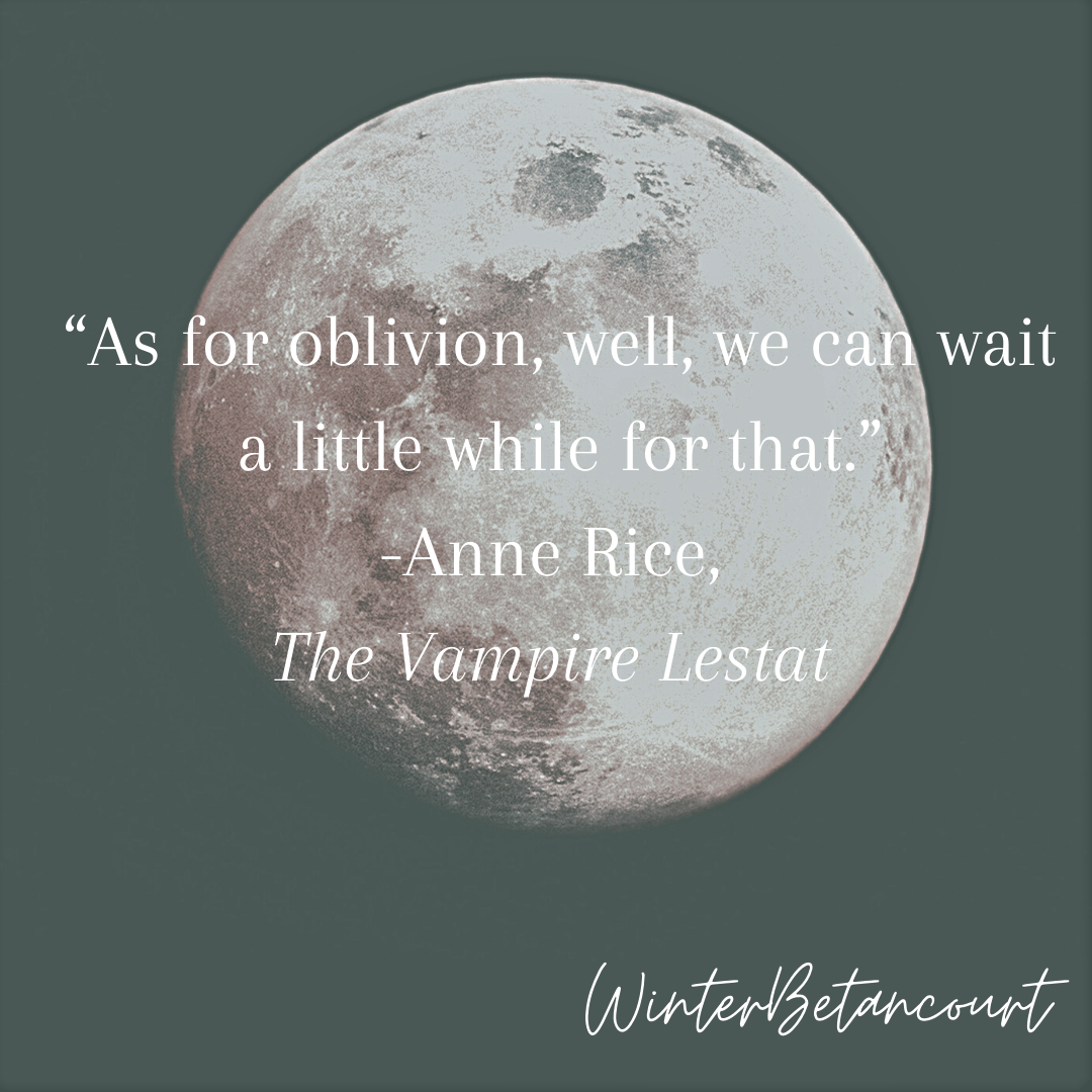 1. Haha I know what you mean! I like Lestat too, I enjoy reading Anne Rice’s vampires they’re interesting characters. Thank you so much for reading! 🙂